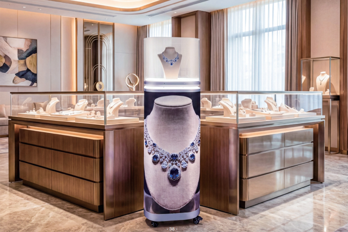 Luxury Retail: Used to showcase high-end products, such as jewelry and cosmetics, by providing a unique, angled, multi-tiered viewing surface.